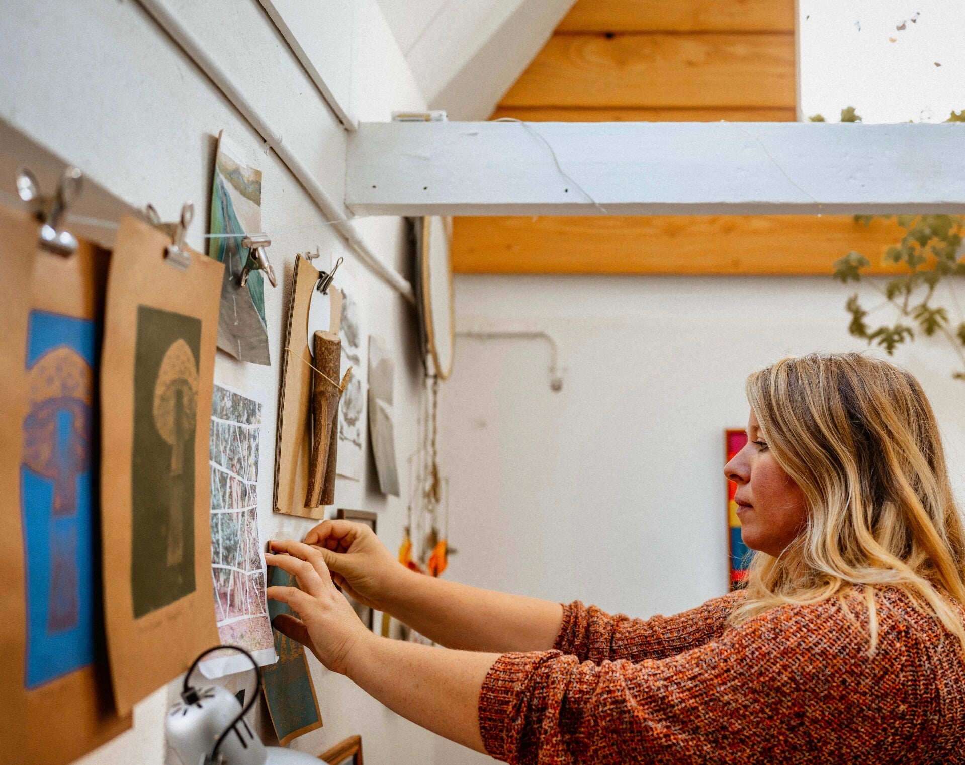 Tijdens de kerstmarkt kun je in haar atelier rondkijken en kunst cadeaus kopen voor onder, en in de kerstboom.